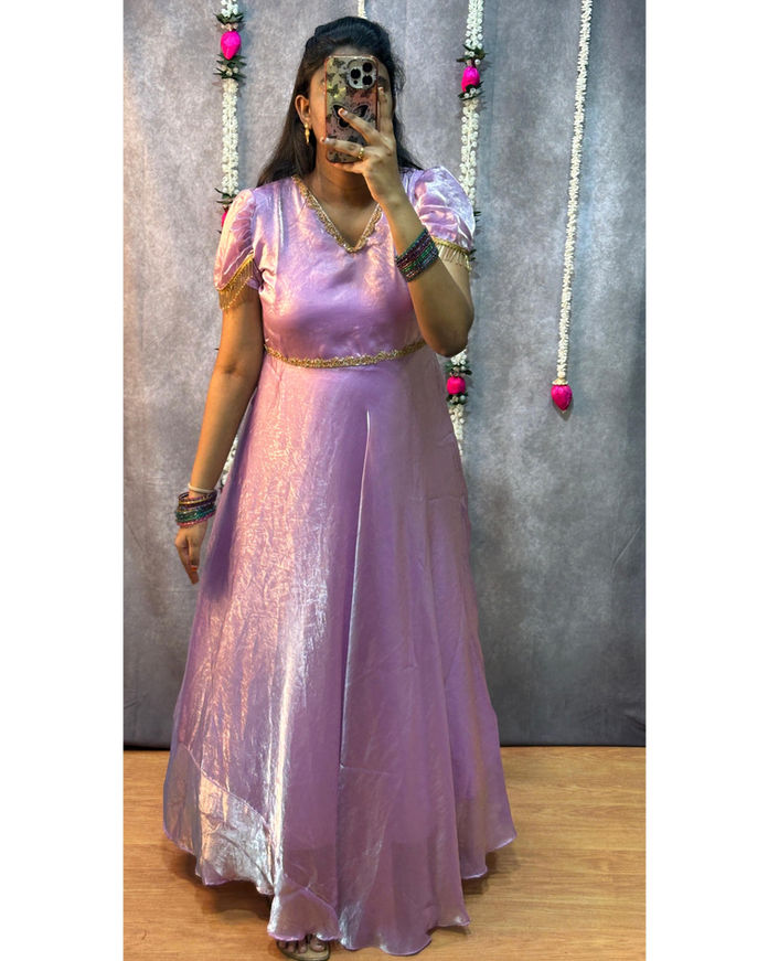 Space Silk Beads work Gown+Duppata+Belt